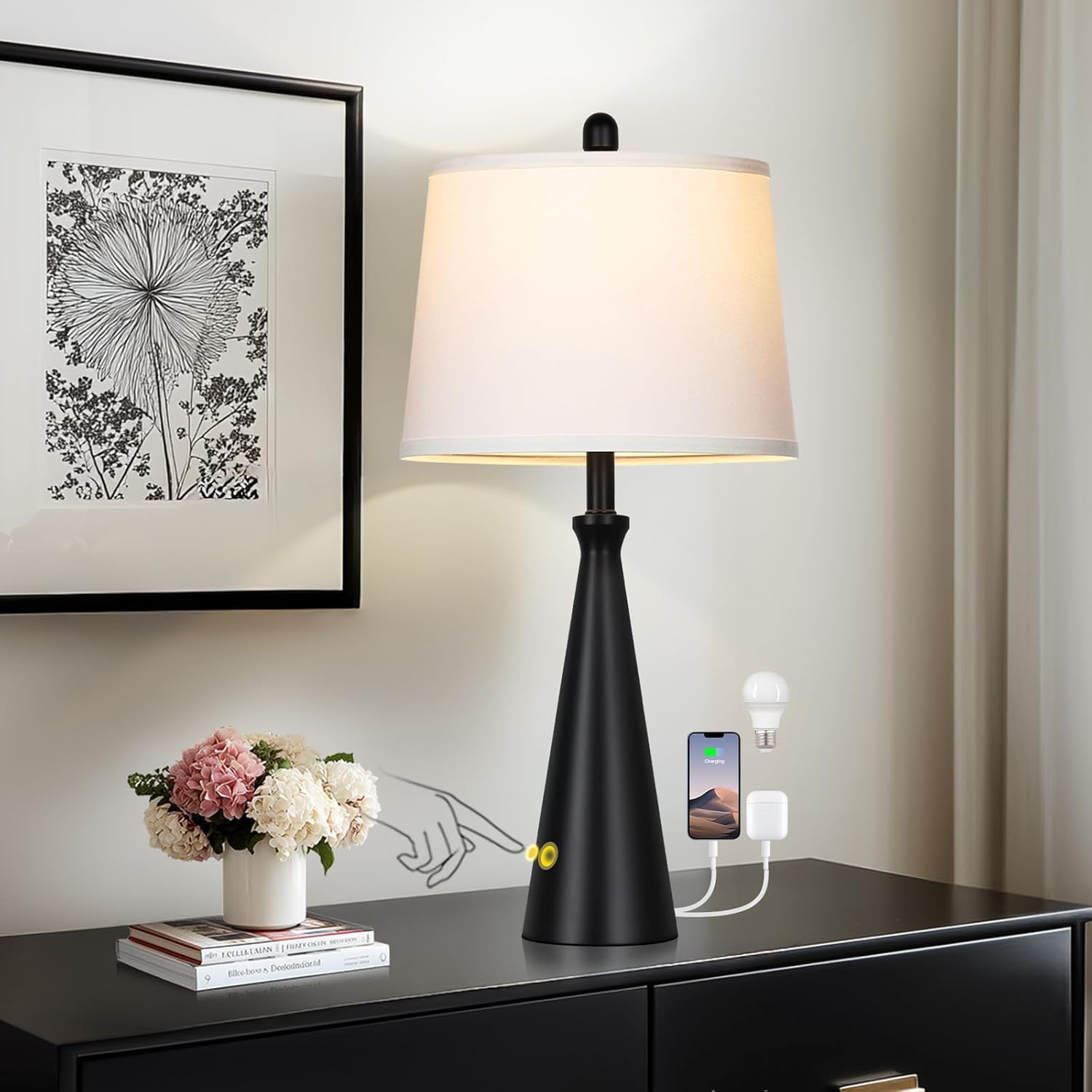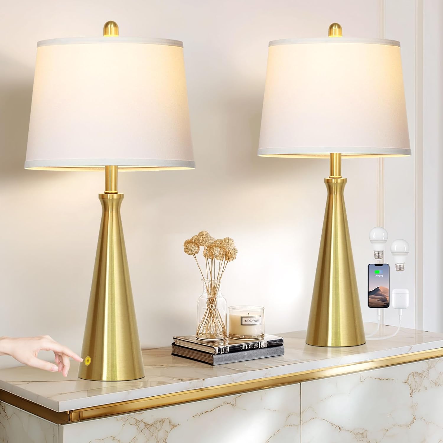 | Additional Features | 2 LED Bulbs Included, 28-Inch Tall, 3-Way Dimmable, Table Lamps with USB C+A Ports and AC Outlet, Touch Control |