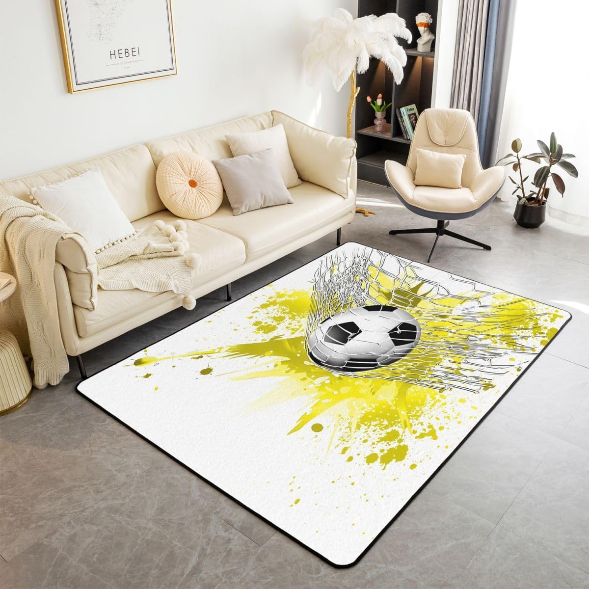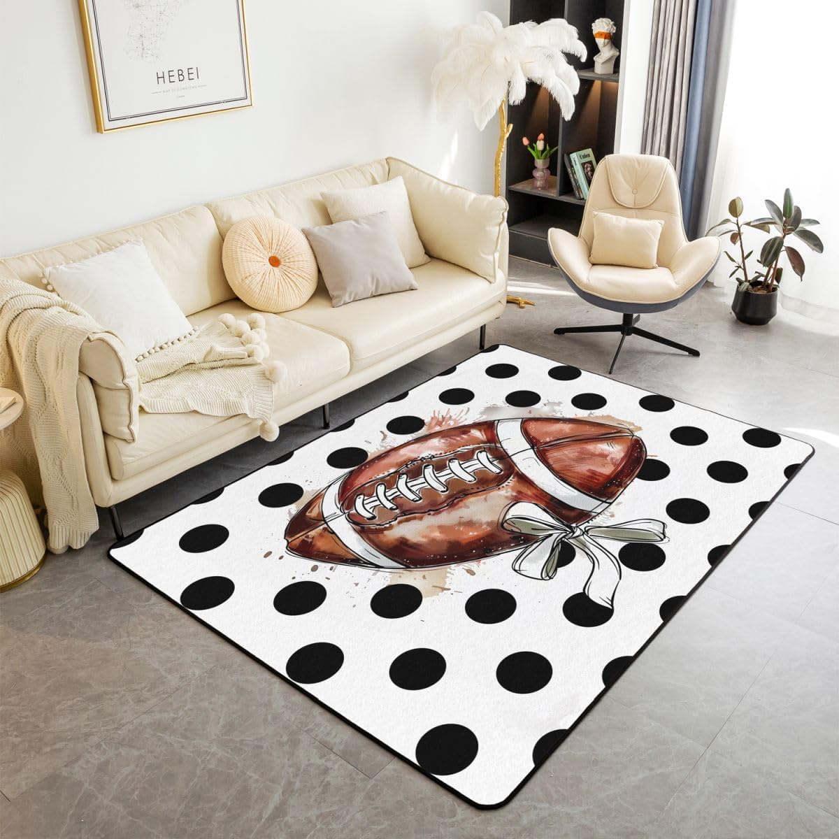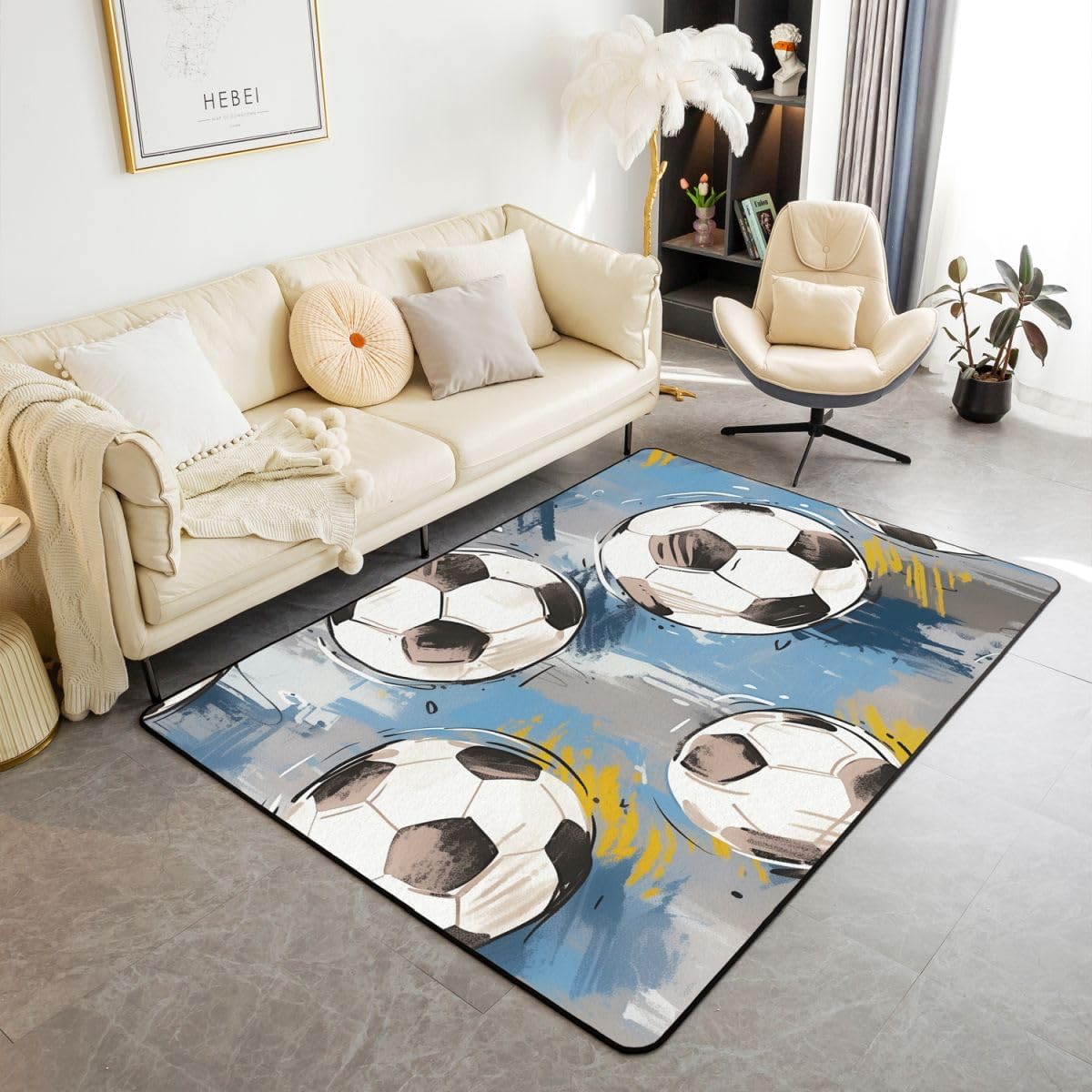 Erosebridal Graffiti Football Area Rug 6'6" X 4'11" Rugby Living Room Rugs Non Slip for Boys Kids Teens Adults Ball Sports Lover Decorative Carpets Hippie Graffiti Indoor Floor Mat