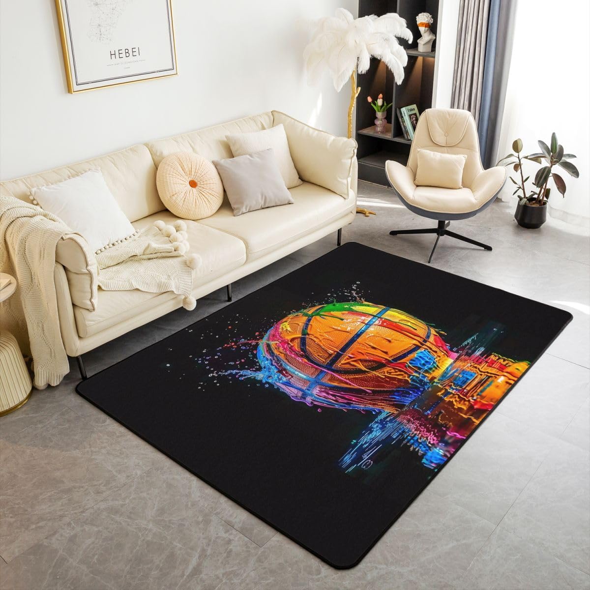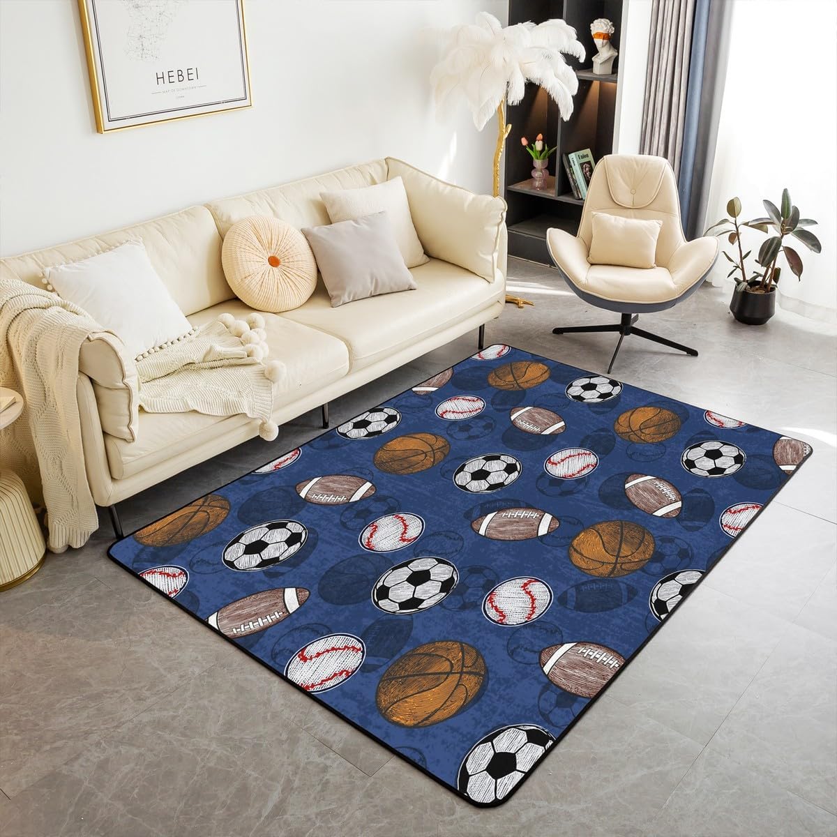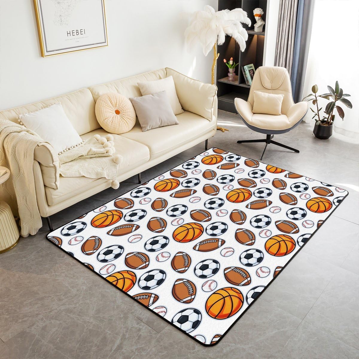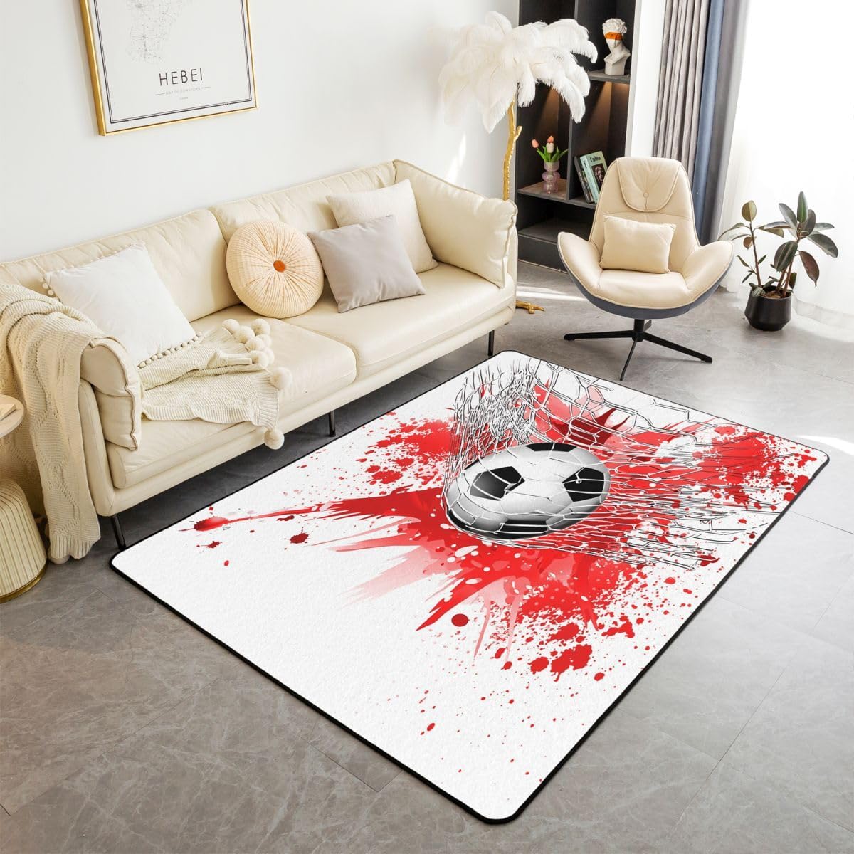 Erosebridal Graffiti Football Area Rug 6'6" X 4'11" Rugby Living Room Rugs Non Slip for Boys Kids Teens Adults Ball Sports Lover Decorative Carpets Hippie Graffiti Indoor Floor Mat