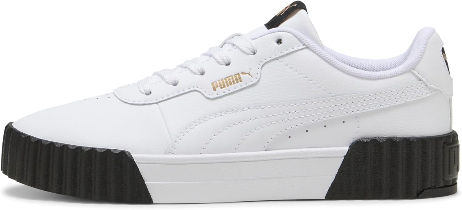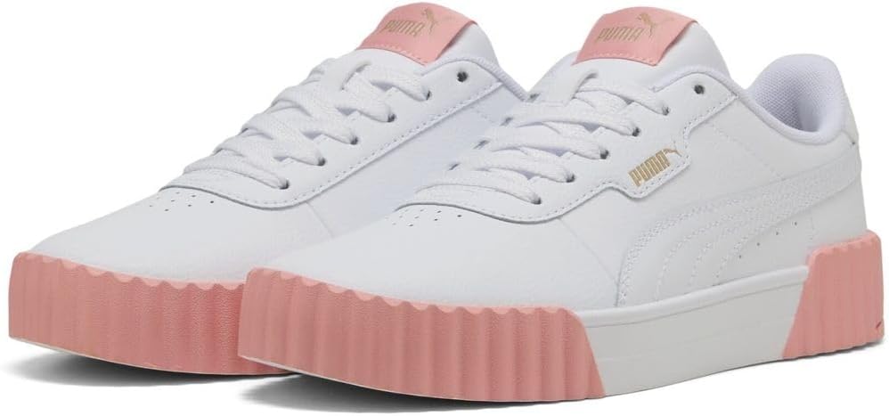 Step into timeless style and ultimate comfort with the PUMA Carina 3.0 Women's Sneakers, inspired by the classic '80s tennis aesthetic. These fashion sneakers effortlessly combine vintage charm with modern updates, making them an essential addition to any wardrobe. Crafted from sleek leather and synthetic leather uppers, these white sneakers for women provide both durability and sophistication. The Softfoam+ sockliner offers superior cushioning and soft support with every step, ensuring your feet remain comfortable all day long. Ideal for a variety of settings, from running errands to casual outings with friends, the Carina 3.0 sneakers pair beautifully with a wide range of outfits. Whether you're opting for casual jeans or a polished look, these shoes will elevate your style. The rubber outsole ensures reliable traction, making them a practical choice for everyday wear. Additionally, the PUMA Formstrip branding and logo details add a sporty touch to these womens fashion sneakers. Environmentally conscious consumers will appreciate that the Carina 3.0 is made with at least 30% recycled materials, supporting sustainable production practices. With a clean, minimalist design, these womens tennis shoes not only enhance your wardrobe but also make an eco-friendly choice. Experience the perfect blend of style, comfort, and sustainability with the PUMA Carina 3.0 Women's Sneakers.
