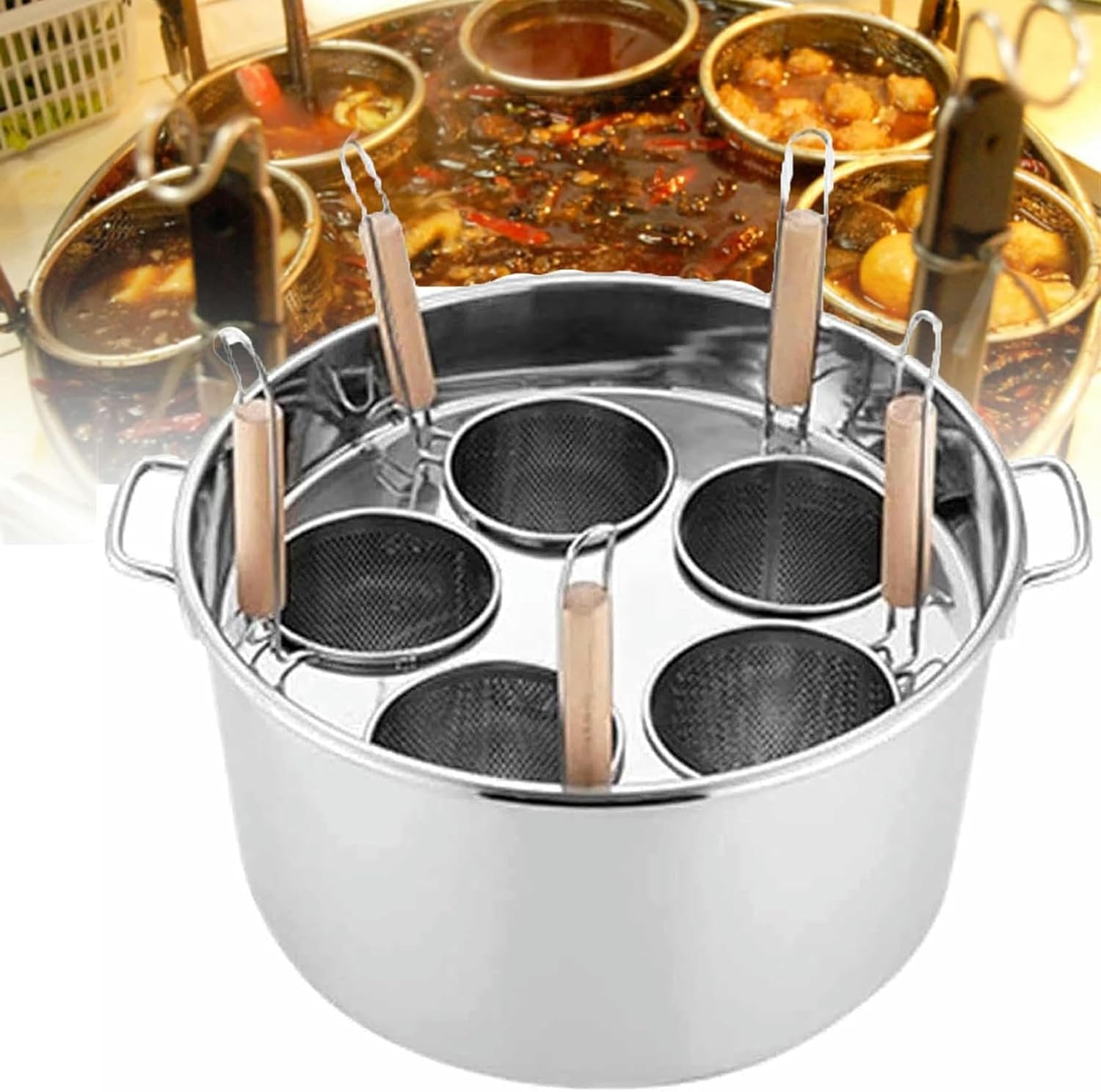 3/4/5 Hole Pasta Pan Insert Set, Stainless Steel Pasta Pan and Insert Strainer Basket Cookware for Home Kitchen Restaurant Commercial Cooking Toolsfeature:1. Mirror finish, classic appearance.2. Professional effect stainless steel.3. The aluminum package base heats up quickly and dissipates heat evenly.4. Insert the strainer basket, easy to use.5. Cool handle, dishwasher safe.6. Ideal kitchen cookware multi pot can be used as pasta pot, pasta pot, noodle steamer, vegetable steamer, meat steamer stainless steel set.Specification:Name: Pasta Pot Liner SetMaterial: 201 Stainless SteelColor: Silversize:3-hole pasta pan size: 22x36.5cm/8.7x14.4 inches4-hole pasta pan size: 23x41.5cm/9x16.4 inches5-hole pasta pan size: 24x46.5cm/9.4x18.3 inchesInsert the strainer basket Dimensions: 13.5x13.5x21.5cm/5.3x5.3x8.5 inchesApplicable: induction cooker, gas, electric, ceramic cookerpacking list:1 x Pasta Pan1 x Pasta Pot Holder1 x Pasta Pot Lid3/4/5 x insert strainer basket