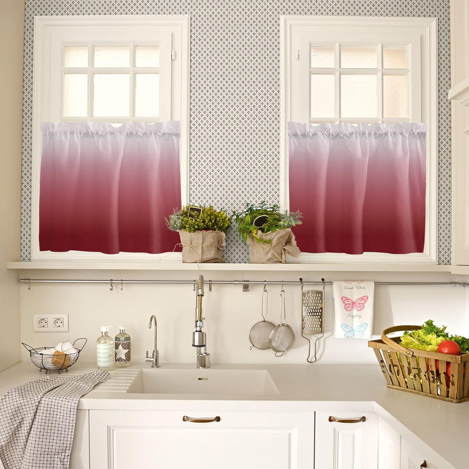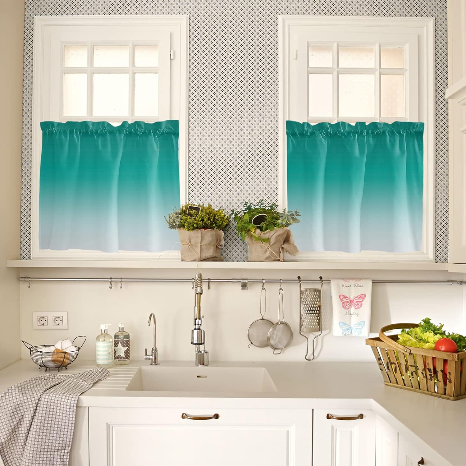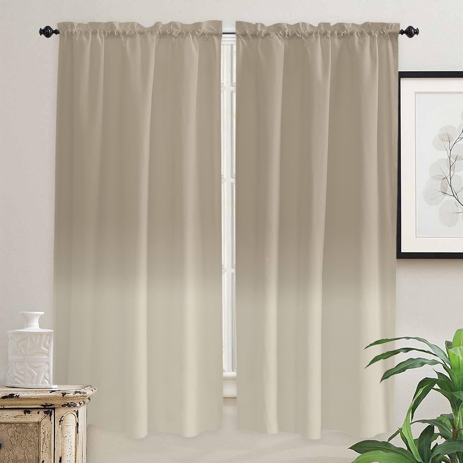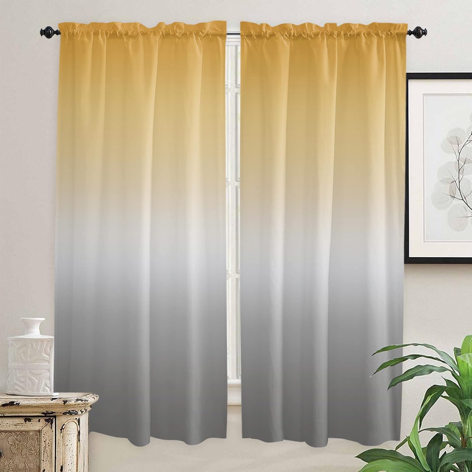 Ombre Curtain Tiers for Windows Feature: Made with a smooth polyester material, it offers a soft and sophisticated look. Rod pocket top, constructed with 1" header and 3" rod pocket, slips effortlessly across your curtain rod, tool-free installation. The small curtain allows part natural light to pass through during the day. Curtains protect your privacy to the fullest extent without affecting room lighting. These half window curtains print with bright color and elegant pattern, won't fade even after long time use, add character to your kitchen or bathroom. Perfect for any places where you want to decorate or shade sunlight, providing privacy protection for your house. Combine with valance can bring different experiences to your living room, bedroom, kitchen or any other small windows. Specification: Available Size: 27.5"x24" / 27.5"x36" / 27.5"x45" / 42"x45" / 42"x54" / 42"x63" / 52"x45" / 52"x54" / 52"x72" Material: Polyester Package: 2 x Tier Curtains Easy Care Instructions: Machine washable in cold water. Do not bleach. No dry cleaning. Iron at low heat if required. 100% Satisfaction Guarantee: Your purchase includes an extended 30 days warranty. If you have any question, please don’t hesitate to contact us. Warm Tips: Before choosing your favorite curtains, please measure the width of your pole and window. Due to different screen display, the color of actual item may vary slightly from images.