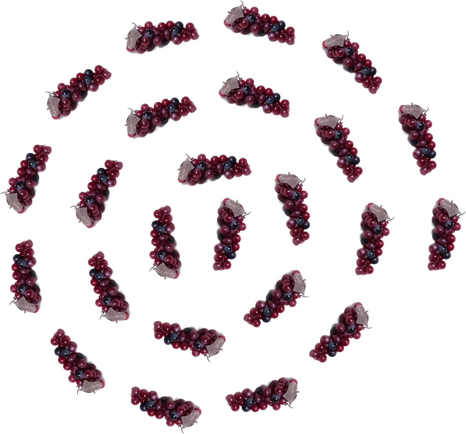24-pack case of green grapes clusters. Each approx 6-inch long, 36 berries, 3 leaves. Great for home decorating, photo props, theater stage props, and restaraunts.