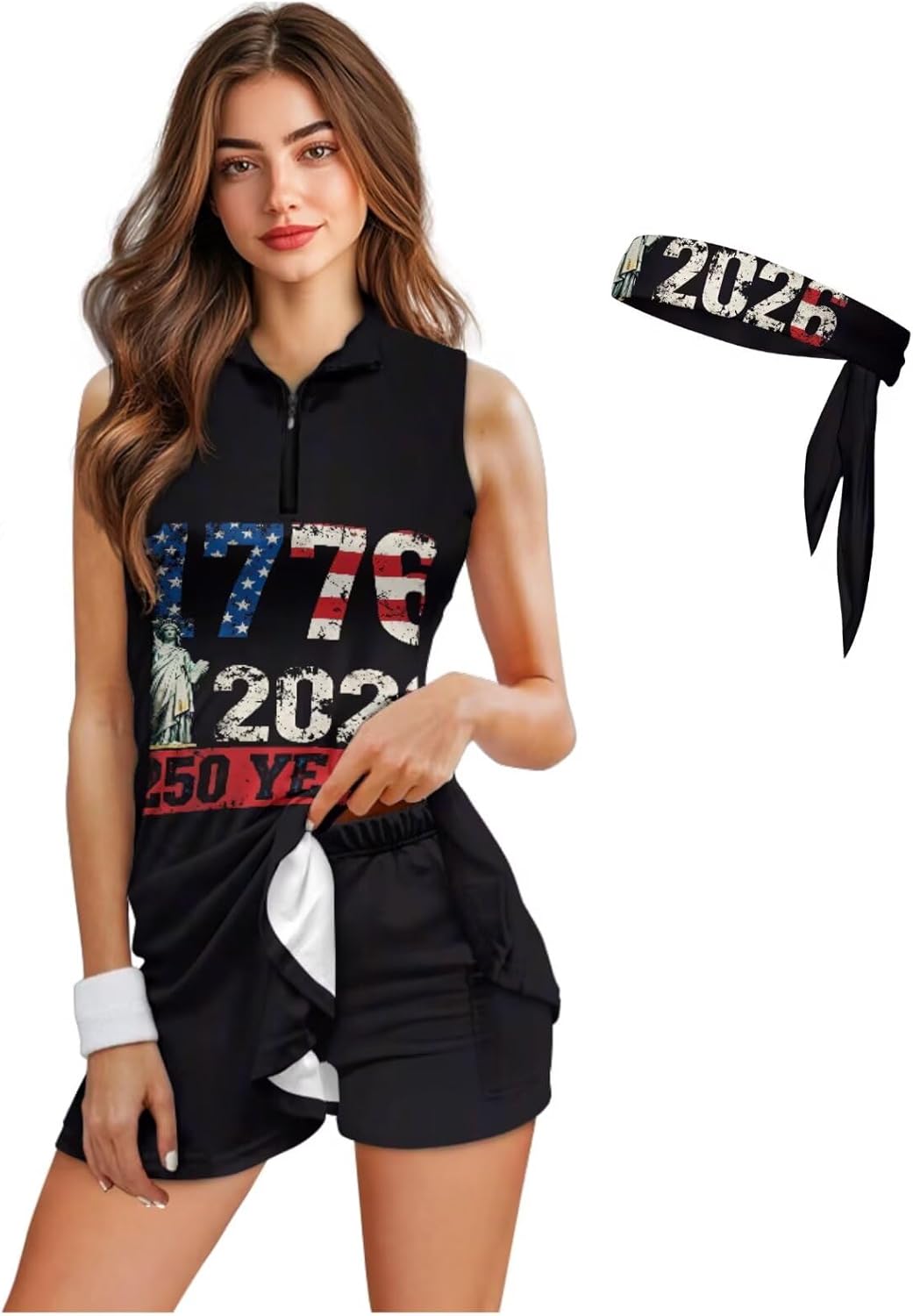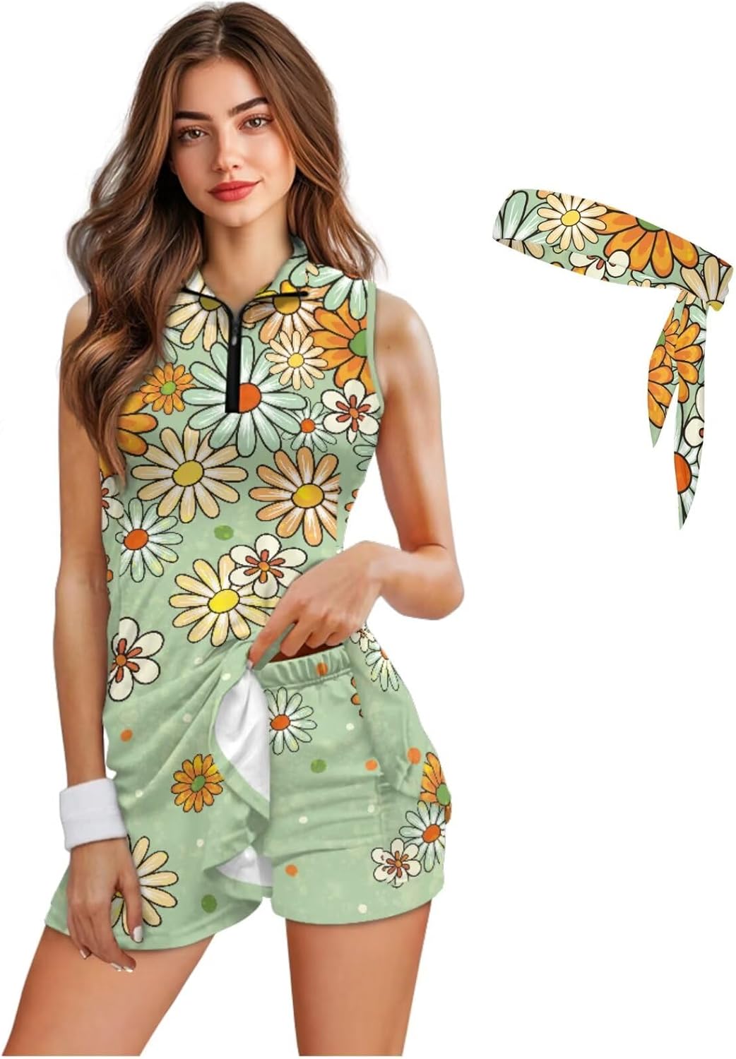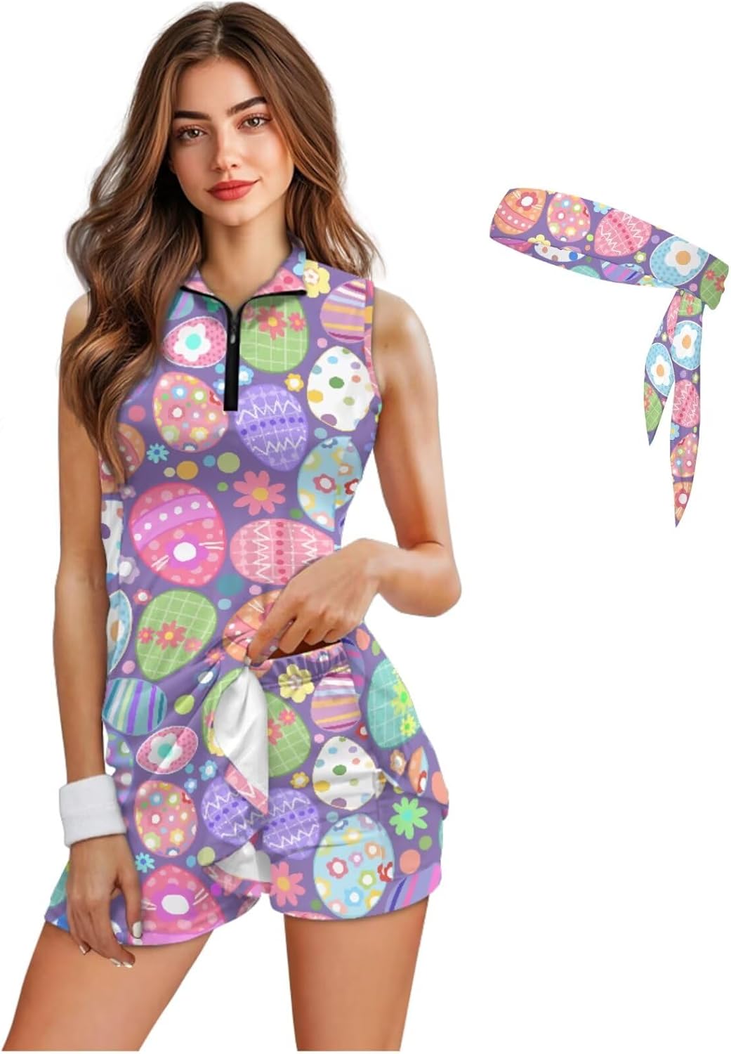 Play in Style: Your All-in-One Golf & Active Wear Solution Step onto the green or court with confidence and style in our complete 3-piece women's active set. Designed for the modern athlete who values both performance and aesthetics, this ensemble combines the polish of a dress with the practicality of shorts, all tied together with a chic hair accessory. Set Includes: 1 x Sleeveless Half-Zip Tennis Dress 1 x Matching Inner Shorts (with pockets) 1 x Double-Sided Headscarf Design Details & Functionality: Dress: Features a half-zip polo collar, A-line skirt with a flattering wavy hem, and a sleek, feminine silhouette. Shorts: Attached inner shorts with a secure fit, two functional side pockets, and a design that prevents riding up. Headscarf: A versatile, double-sided headscarf scrunchie that matches the set and keeps hair secure during activity. Why Active Women Love This Set: → Effortless Coordination: No more guessing—the complete look is ready to go. → Smart Functionality: Pockets where you need them and coverage that moves with you. → Adaptable Style: Transition seamlessly from sport to social settings. → Quality Feel: The fabric looks and feels premium, wash after wash. Perfect For: Golf rounds and tournaments Tennis matches and practice Gym workouts and running Resort vacations and travel Casual brunches or outdoor events